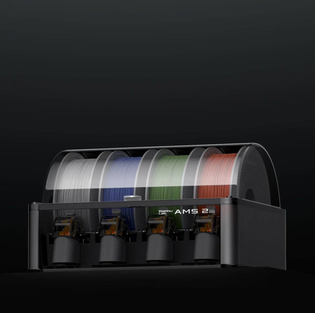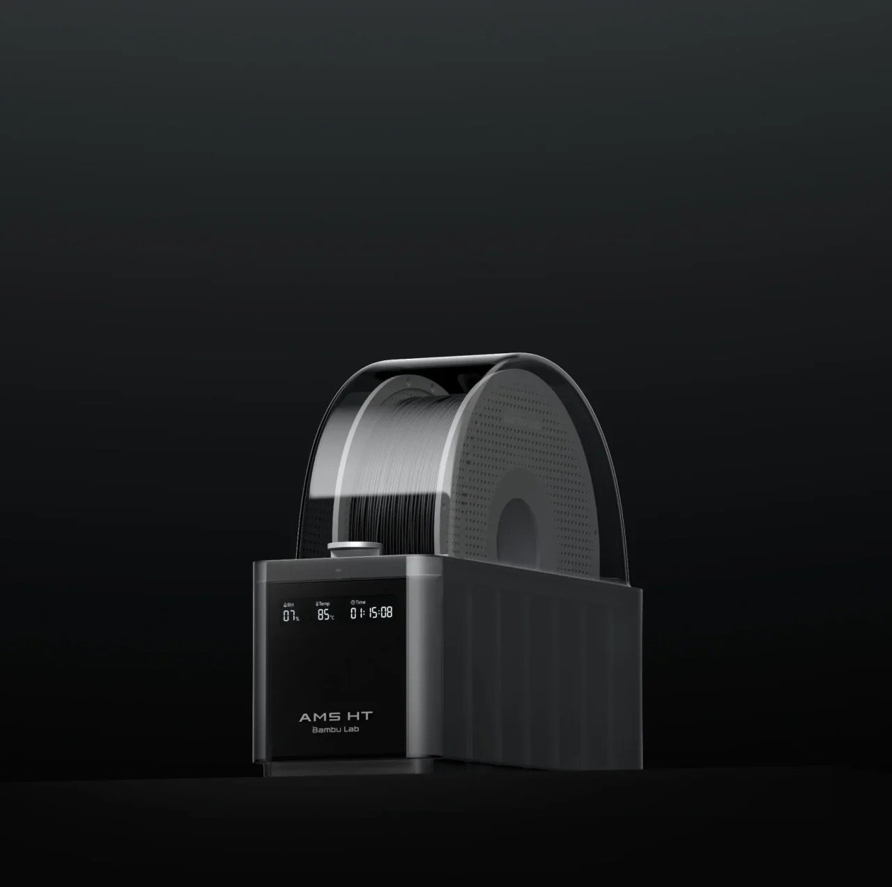 65°Cまでの乾燥機能を新たに搭載した4巻搭載のAMSです。RFIDにも対応し、プリンターと材料を同期し適正温度で乾燥できます。