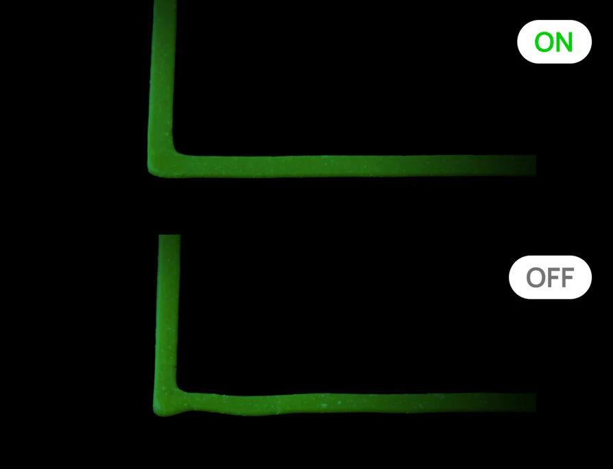 H2S は、押し出し機のサーボ モーターの感知機能とノズルの高解像度渦電流センサーの両方を使用して、ノズル圧力を測定し、各フィラメントの PAパラメータを調整することで押し出しを正確に制御し、表面の滑らかさとエッジの鋭さを向上させます。