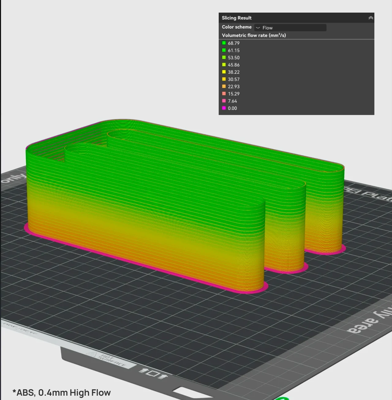 ホットエンドの最大流量 | 標準流量ホットエンド 40 mm³ / s (BambuABS) オプションの高流量ホットエンド 65 mm³ / s (BambuABS) |