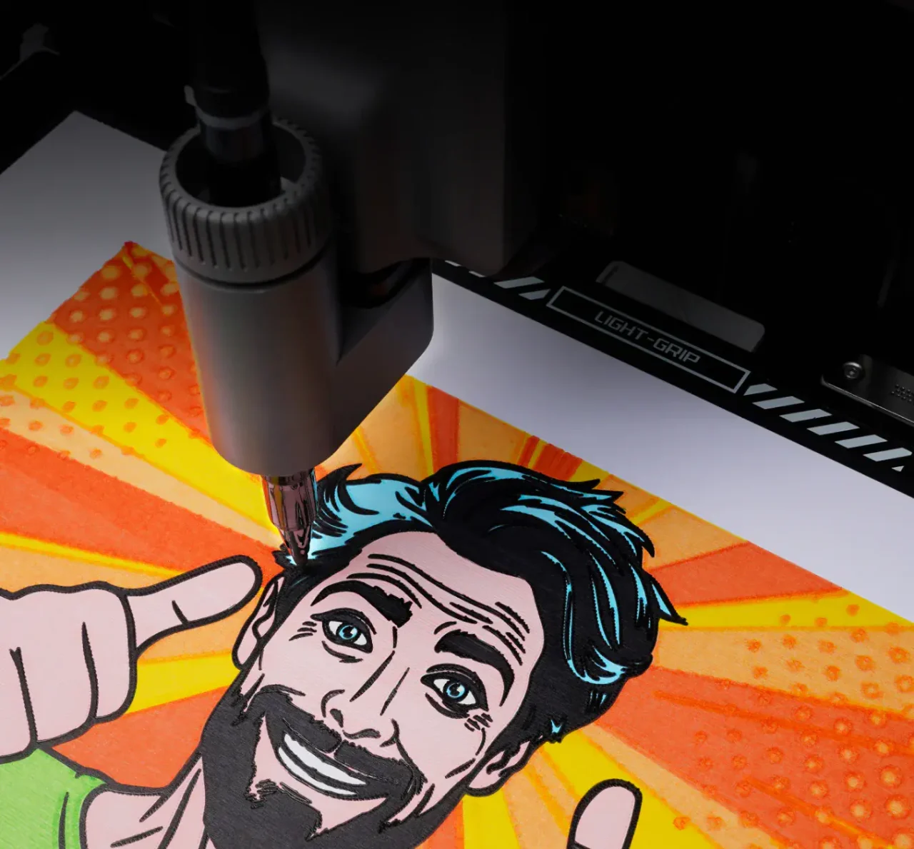 AI カメラがカット パスをグラフィックに自動的に合わせ、最小限の労力で完璧な位置合わせを実現します。